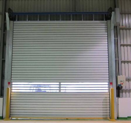 门板约20mm厚,材料颜色为铝白色,门板由独立安装的阳极氧化铝板条组成,柔性橡胶可以提供每个板条之前的高效天气密封,如果出现意外撞击,可以将对门的性损害降到更低限度。铝板条可以增强防风等级;如果门板条损害单个的板条可以快速方便地更换。阳极氧化铝轮廓,门帘由双层的铝型材轮廓组成,带窗轮廓作为可先项。提供中间带4排透明横向视窗,方便人员,货物及车辆的进出,减少因双向通行而导致的意外碰撞,安全快速的通过。